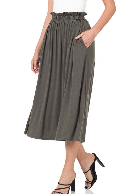 Paperbag Waist Midi Skirt w/ Pockets