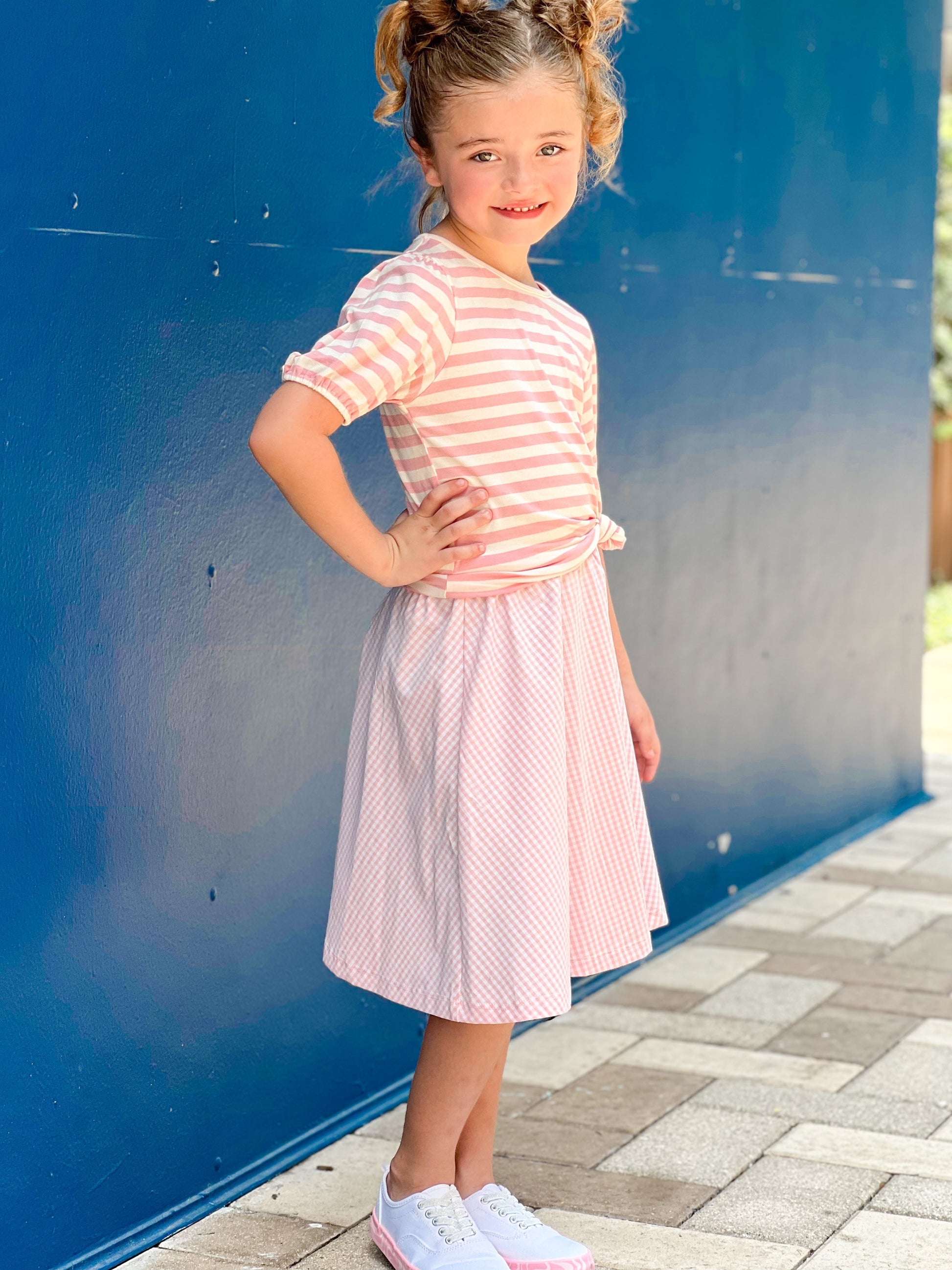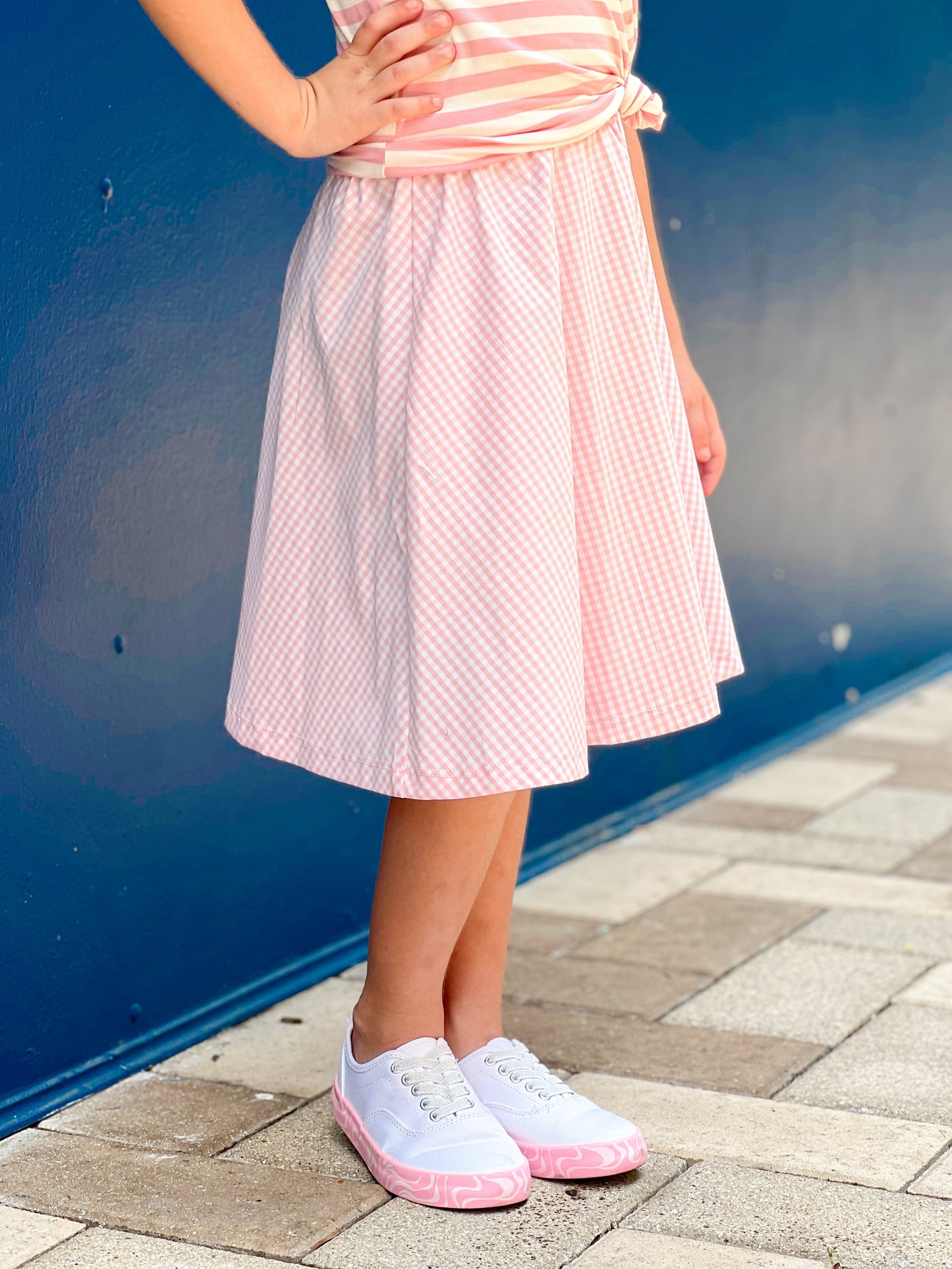 Take on the weekend in style with our double knit stretch Briley skirt. The elastic waist and below-the-knee fit ensure an effortlessly cool and comfortable fit. Made of the same fabric as our most popular Riley skirt this one will allow more play time and comfort.