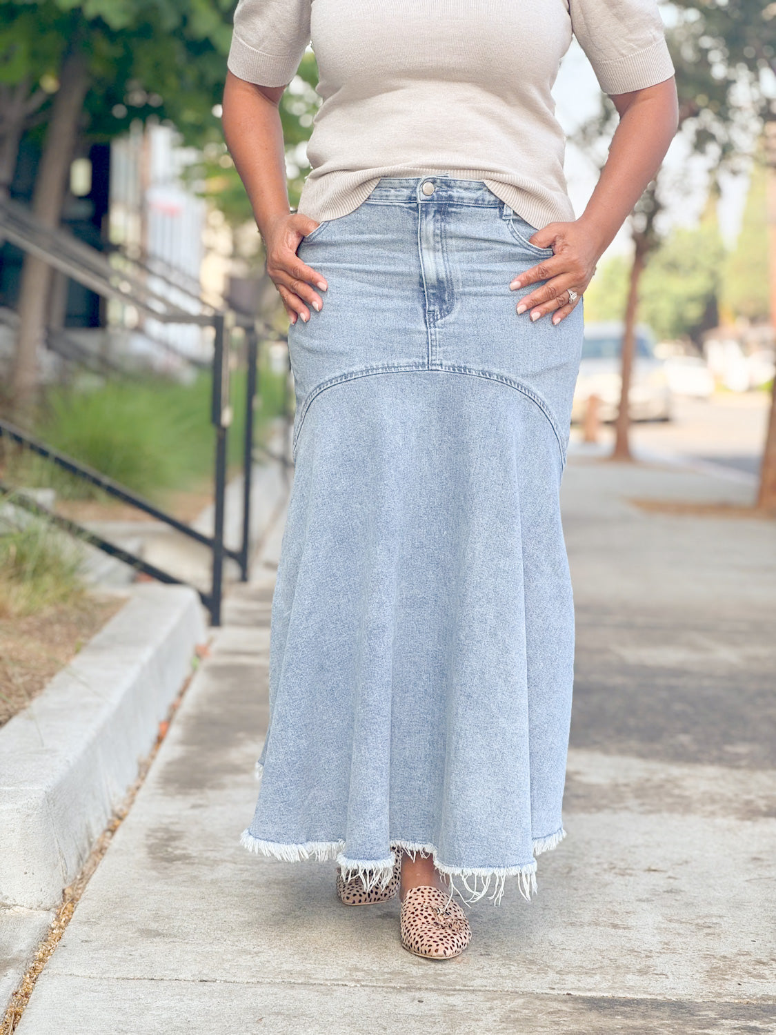 Blending casual denim ease with inspired flair, this skirt is perfect for pairing with boots, graphic tees, or romantic tops for an effortless boho look.