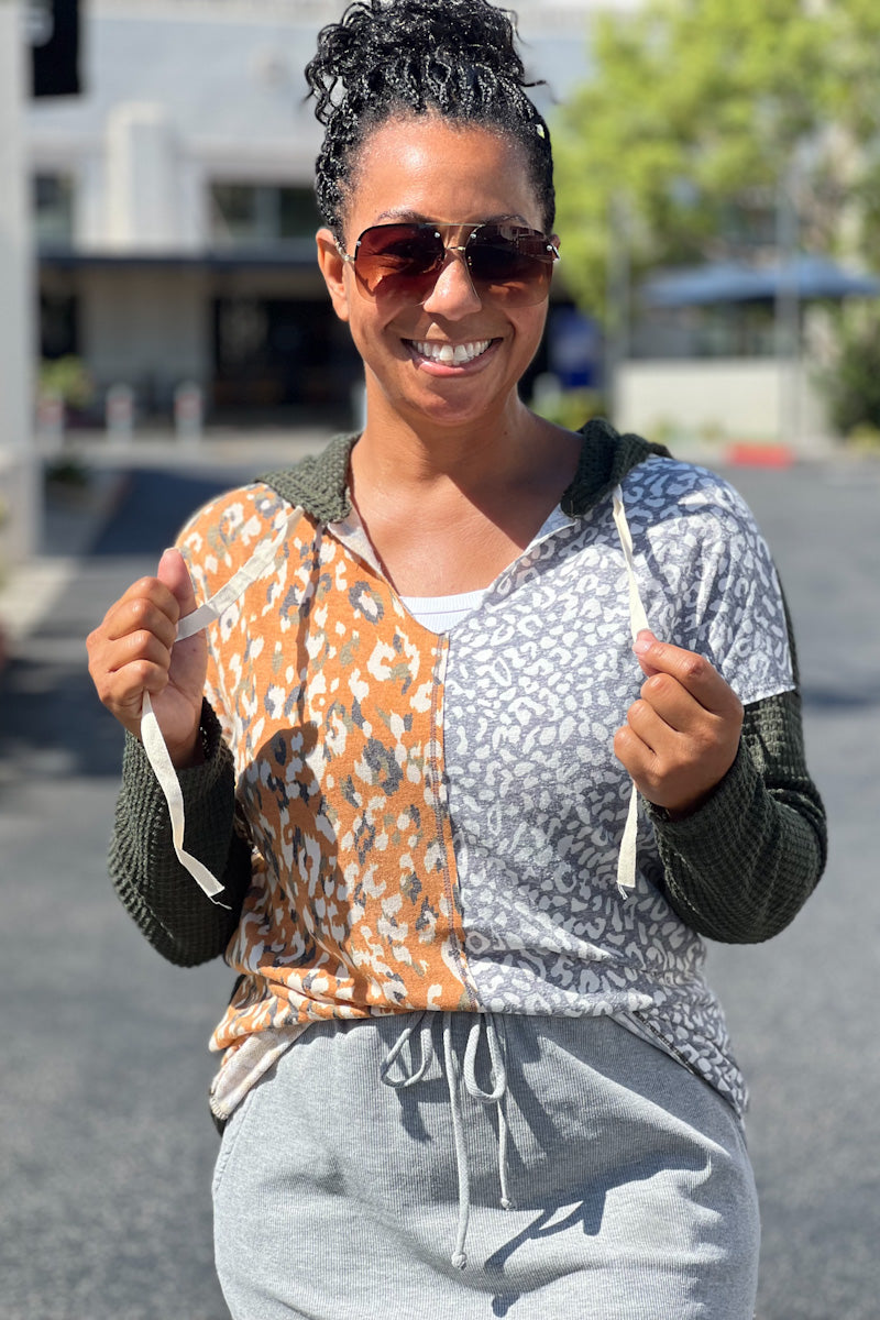 Mix Print Hoodie Top