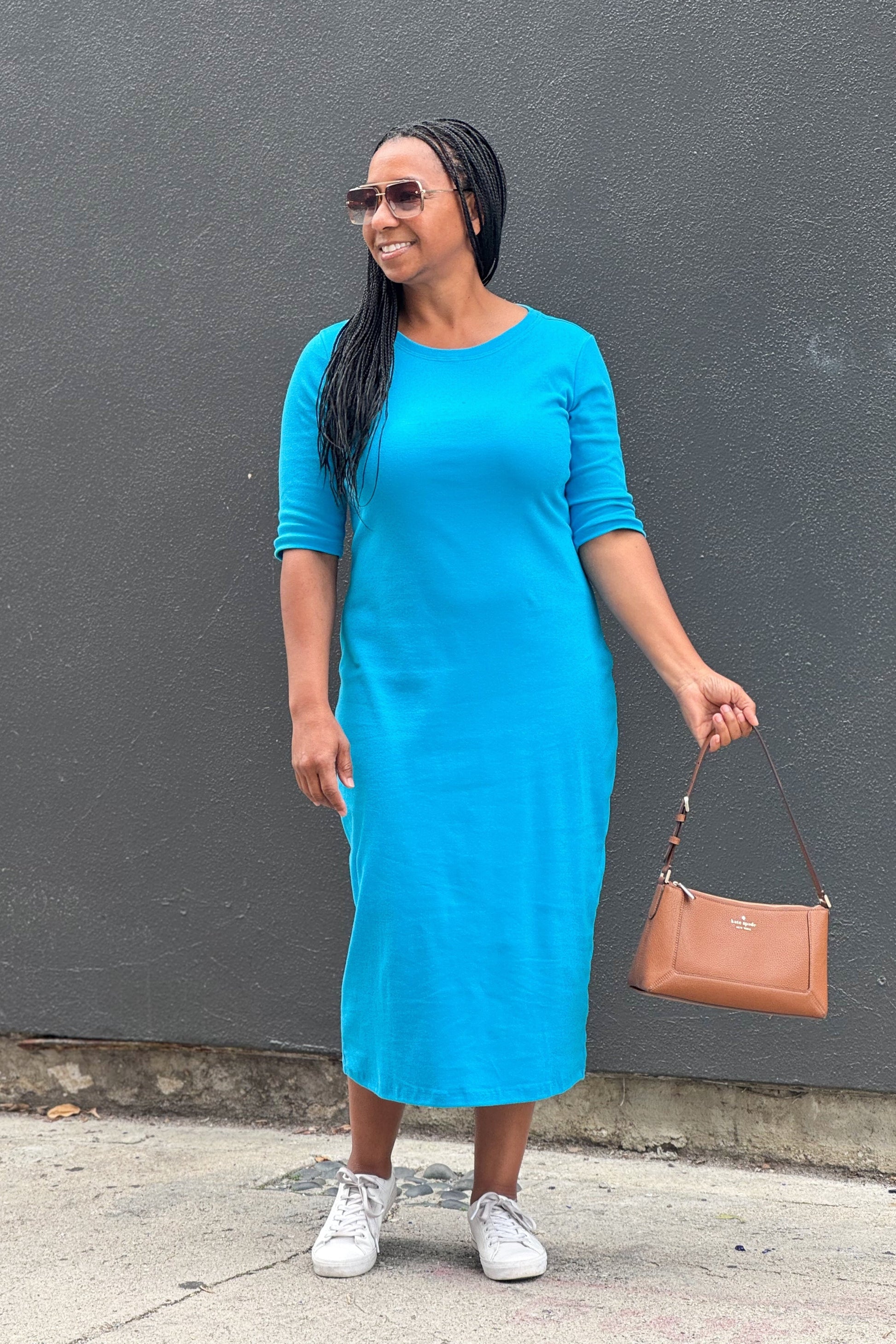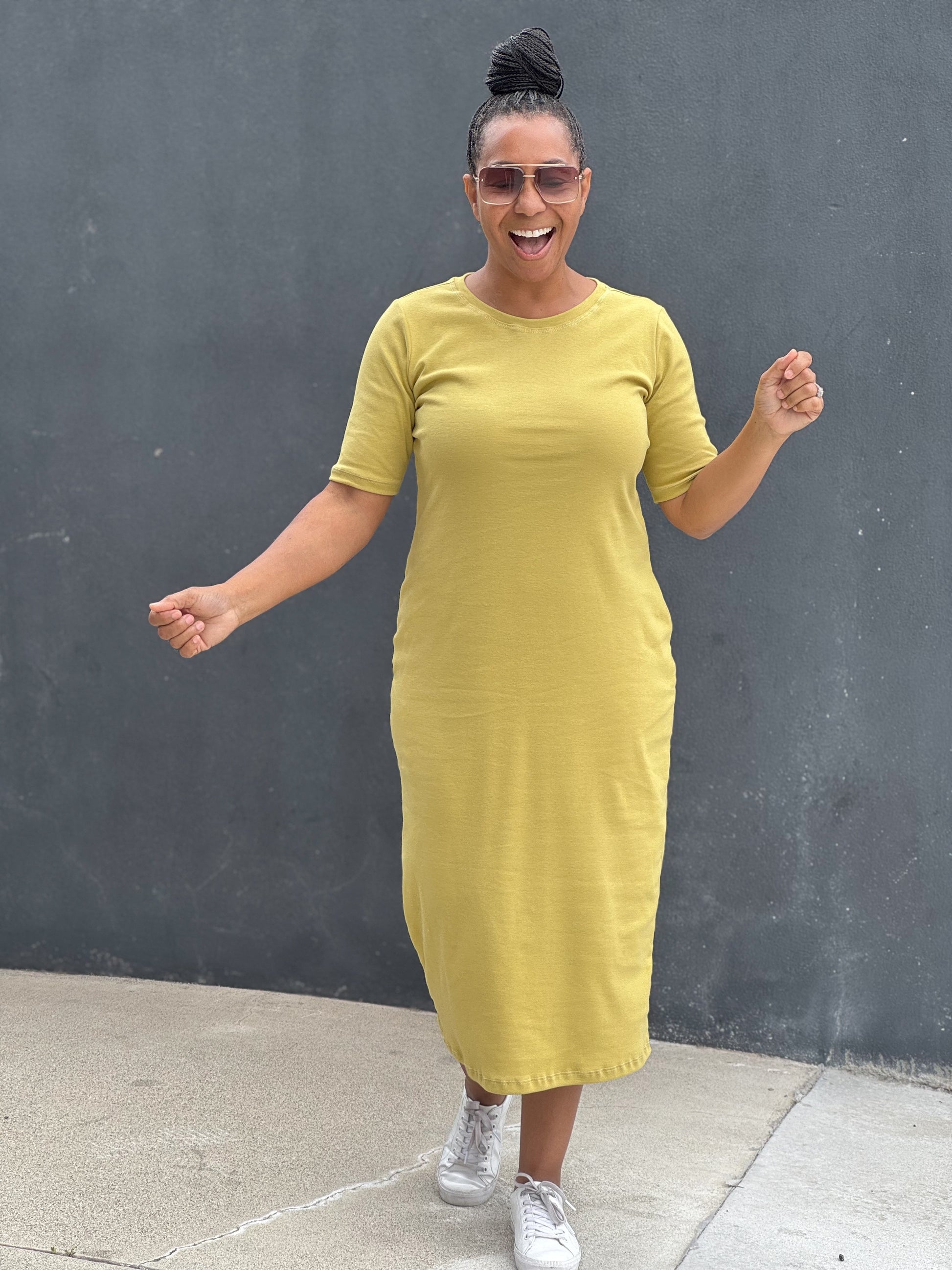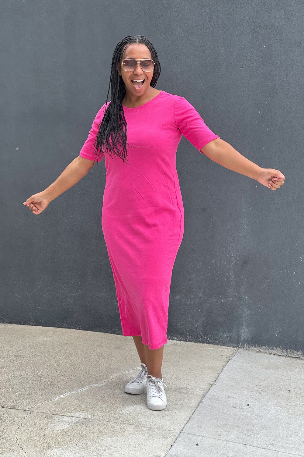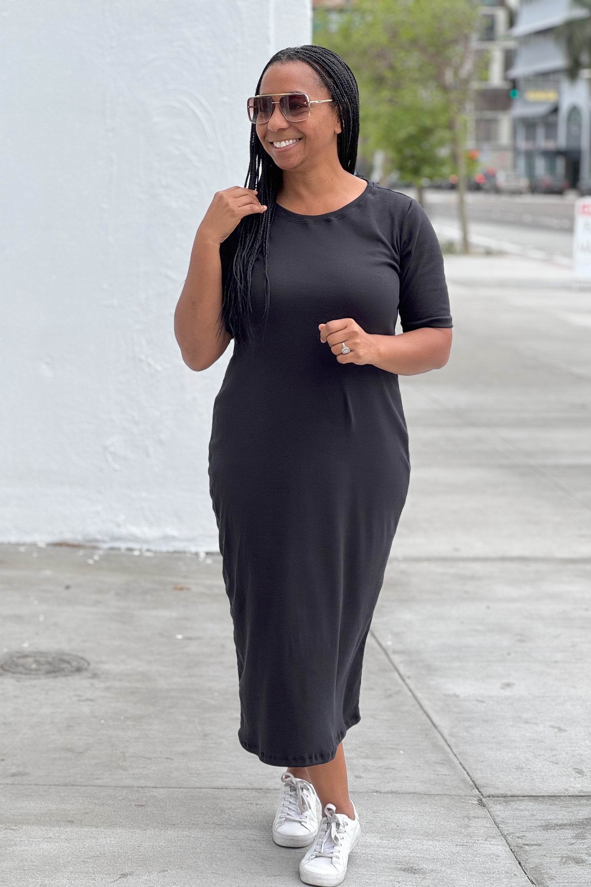 Relaxed fit, midi-length T-shirt dress in jersey knit.