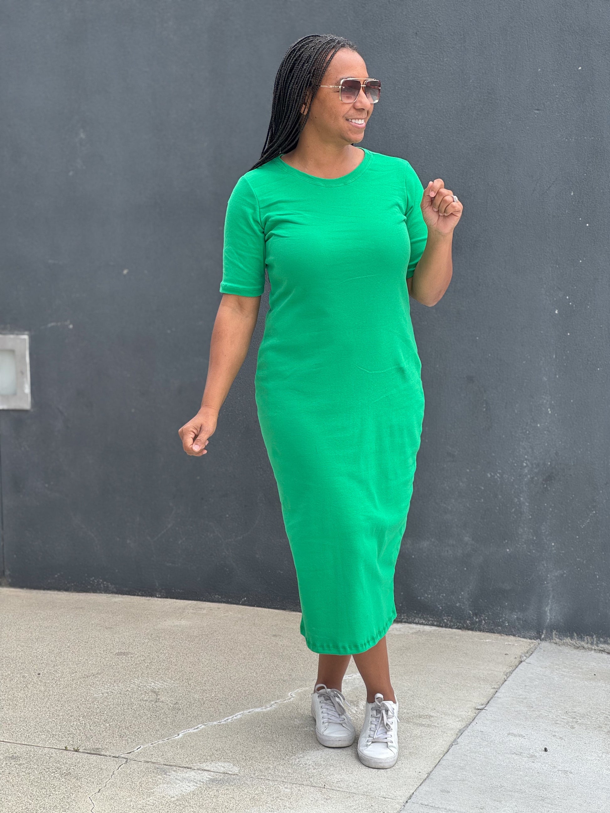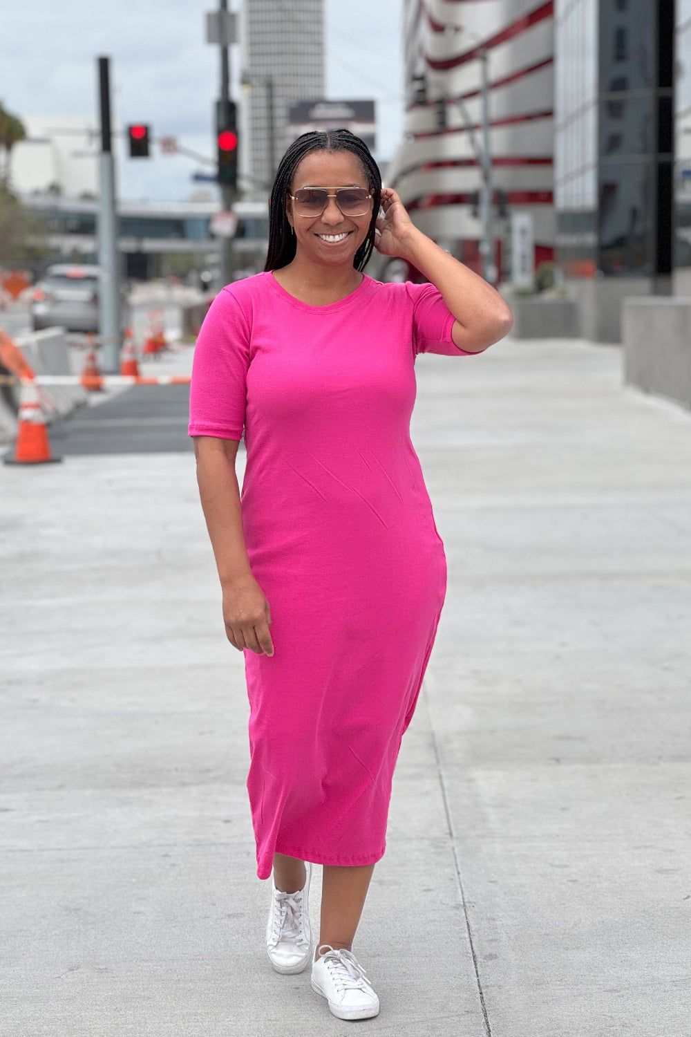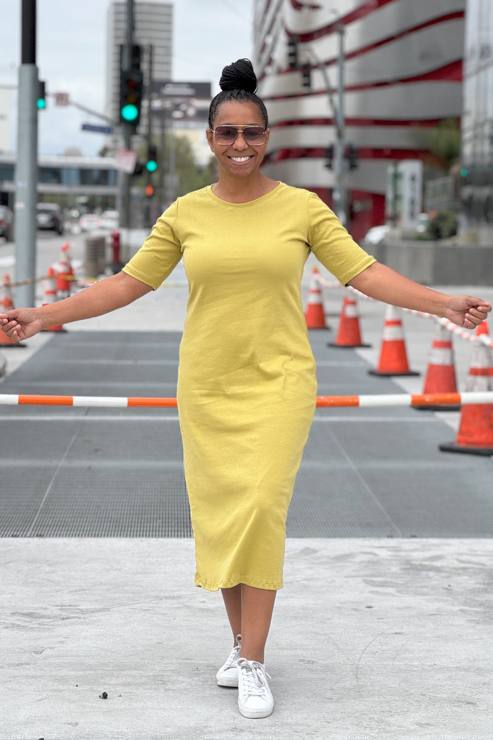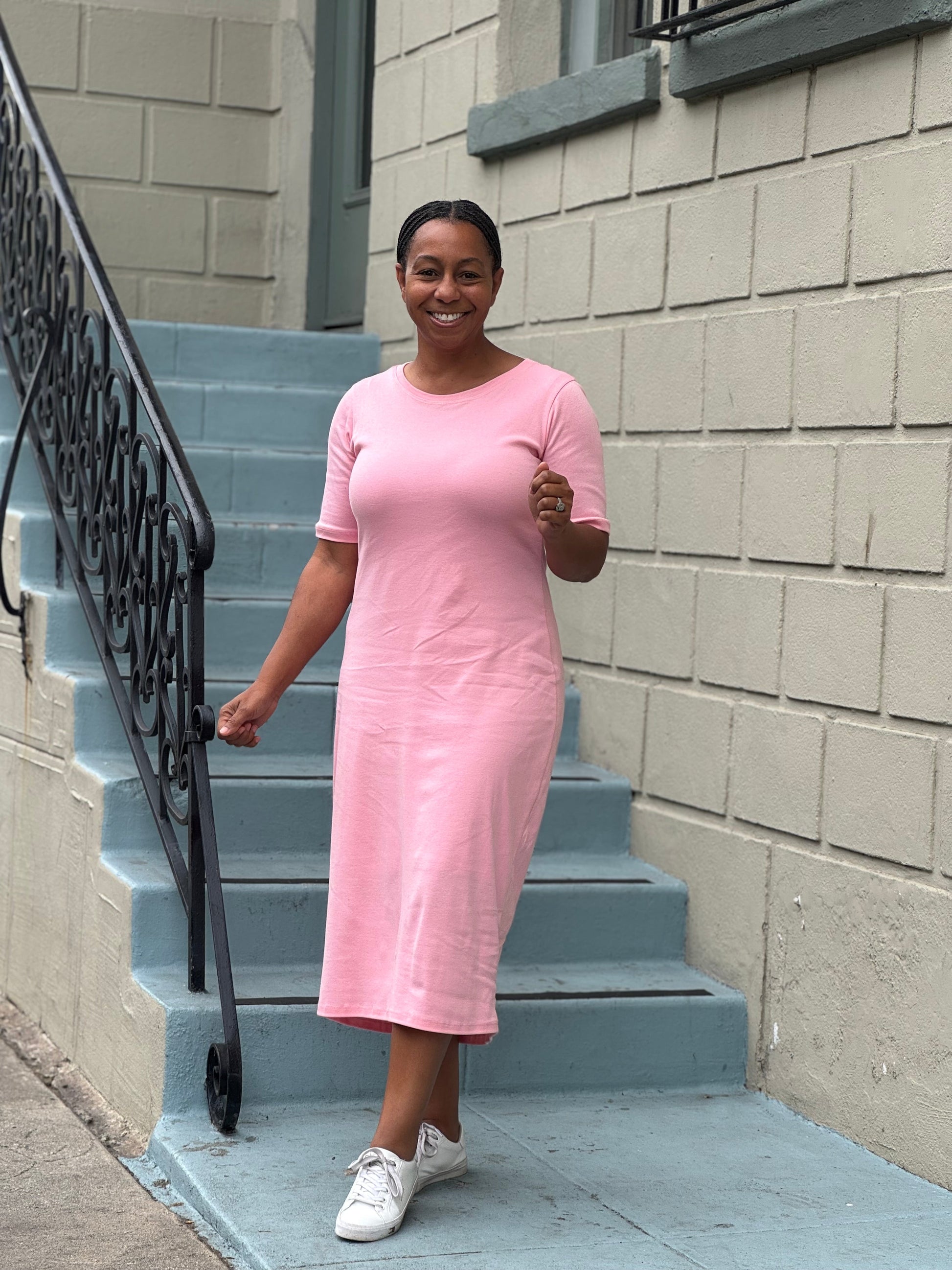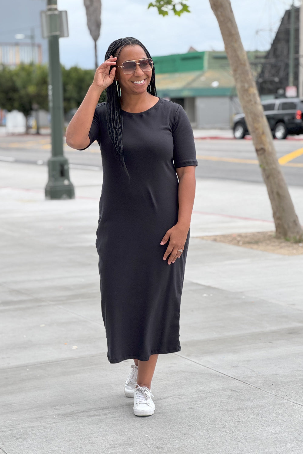 Relaxed fit, midi-length T-shirt dress in jersey knit.